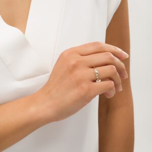 A gorgeous symbol of your love, this sparkling bridal set from features an engagement ring with a romantic heart-shaped diamond haloed by glimmering round diamonds. The band and matching wedding ring are adorned with twists of round diamonds, bringing the total weight of the set to 7/8 carat. The ring is styled in 14K white gold.